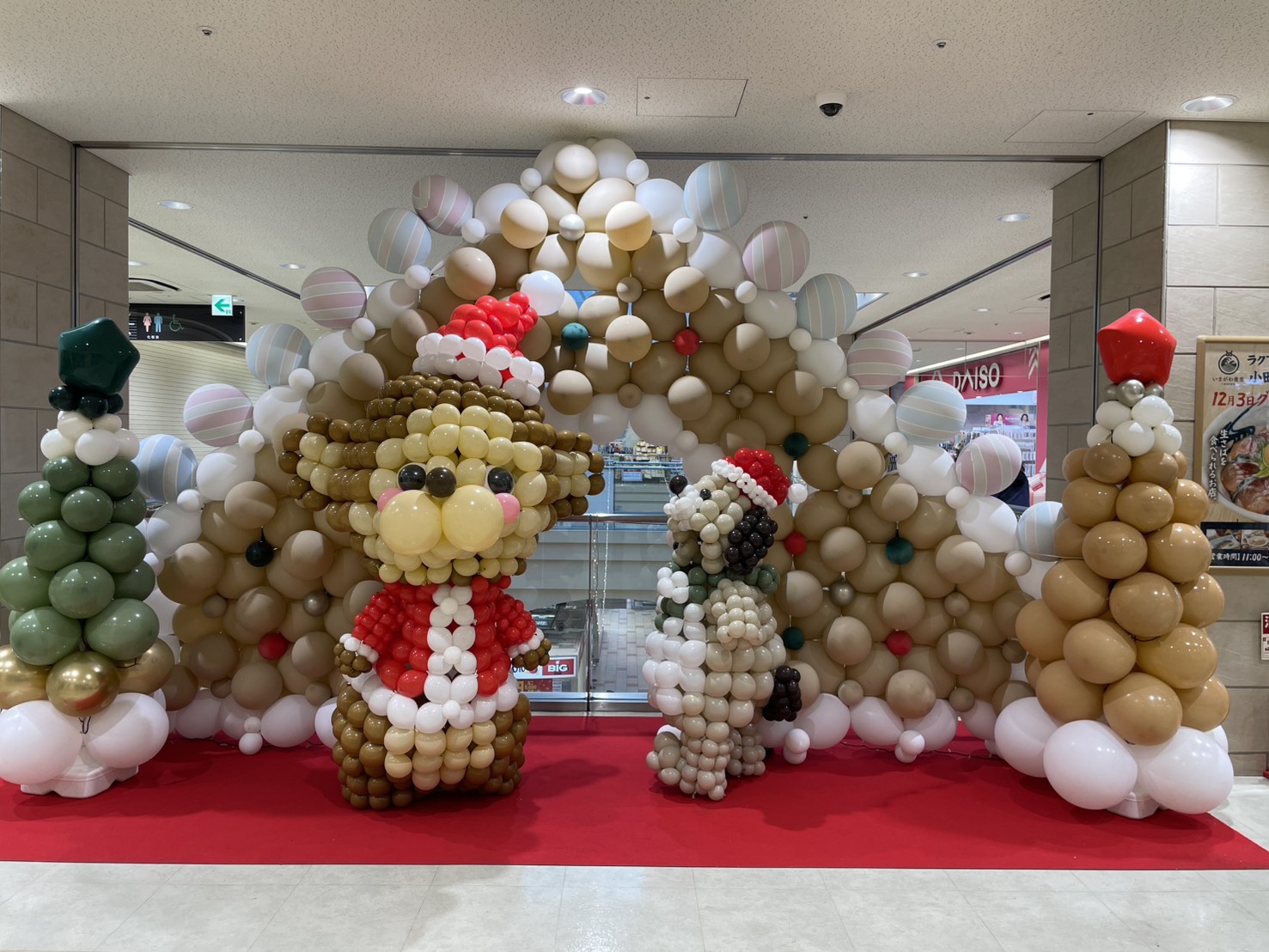 2025年12月18日 クリスマスバルーン始まりました! 冬季装飾が始まりました! 2Fには深青で作られた光クリスマスバルーンツリー! 3Fには大きい動物たちが待ってるログハウス! 11月28日~12月25日閉店までの展示となっております。 その日の閉店後に、正月飾りにチェンジします! その時はまたUPしますのでお楽しみに!! ニュース一覧へ